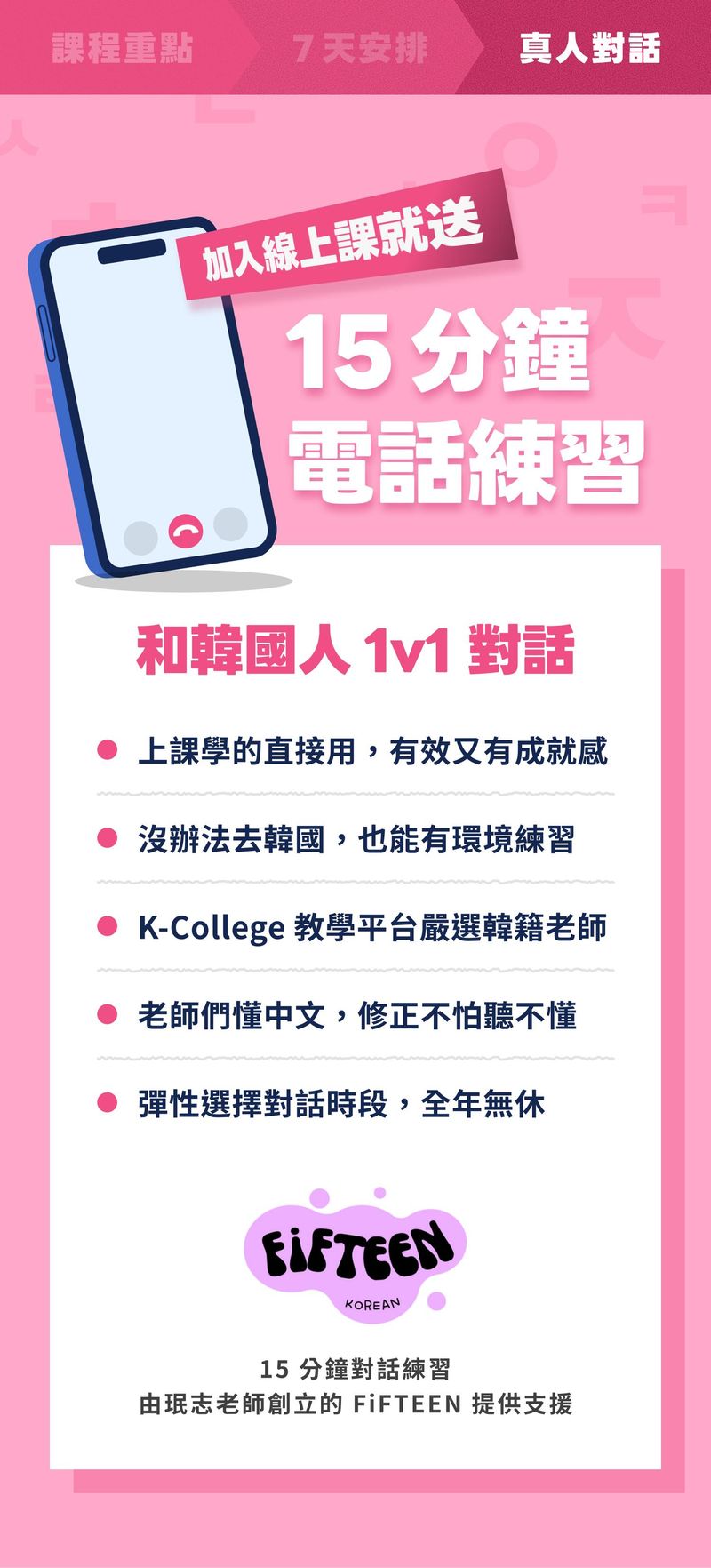 完課後搭配 15 分鐘電話練習,踏出溝通第一步。